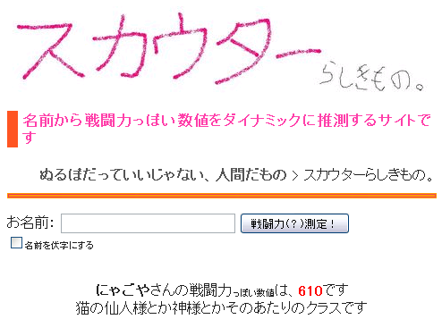 にゃごやさんの戦闘力っぽい数値は、610です